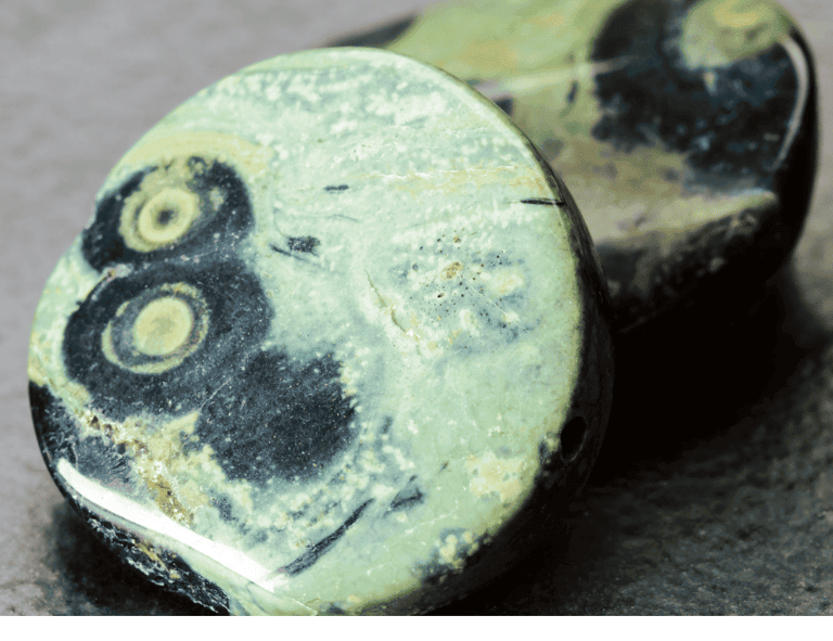 Le jaspe impérial bleu est une pierre fascinante, reconnue pour ses couleurs vibrantes et ses motifs uniques. Ses teintes varient du bleu profond au bleu ciel, souvent marbrées de nuances de blanc, de gris ou même de brun, ce qui lui confère une allure majestueuse et élégante.